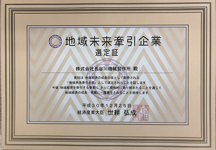 榮獲 日本商務局(經濟產業大臣)頒發的 【區域未來引導型企業】 稱號